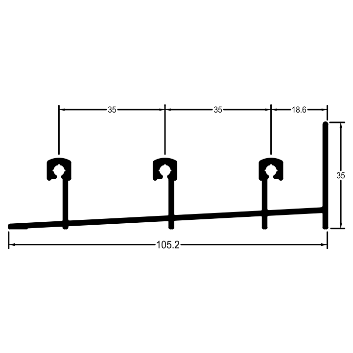Trilho inferior 3 planos / 3 folhas para porta